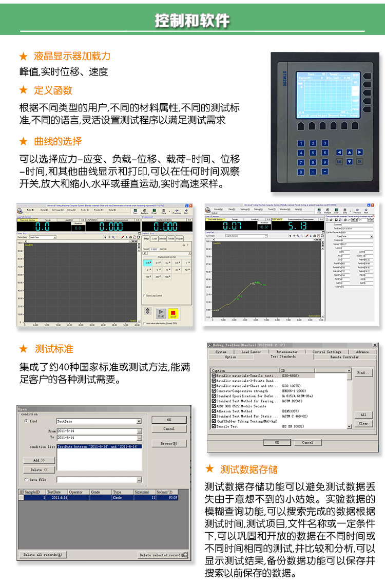 试验机软件为各种材料或行业测试提供简洁直观的操作界面、可用户编程的强大交互能力、完善的分析与报告功能以及内置大量的标准测试方法。即能够满足质量控制所需的简单、易用、高效的要求,又能够满足科研院所深入研究材料性能所需的个性化试验要求。